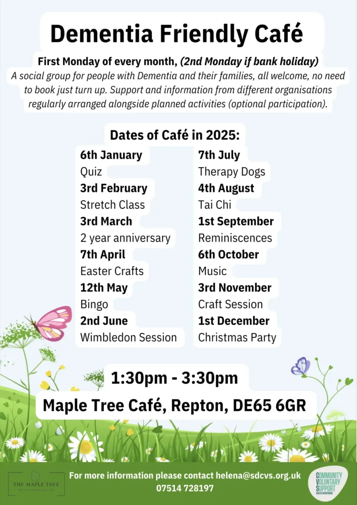 The drop-in sessions are from 1.30 to 3.30pm on the second Monday of every month (see poster for dates and further information)